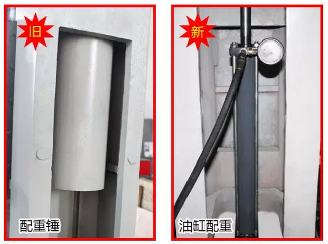 機架的配重由原先的定量配重錘更改為液壓缸配重,配重調(diào)整更靈活、使加工更平穩(wěn)。