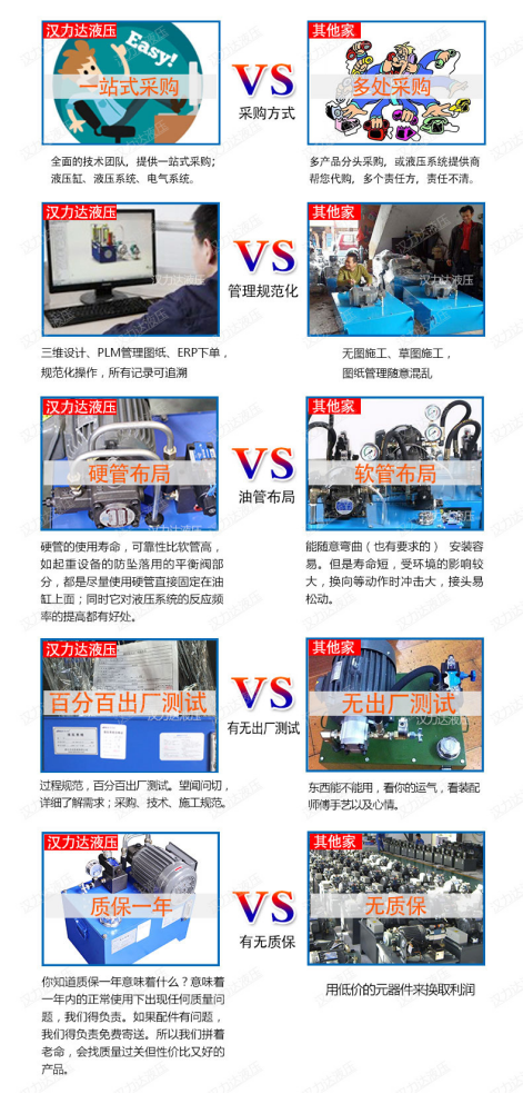方案確認后,李總向我們詢問我們公司產(chǎn)品的質(zhì)量和價格。。宋先生給李總介紹了漢達的公司歷史,漢力達專注液壓行業(yè)19年了,油缸和液壓泵站一起配套提供的,一站式采購,比較方便,出了問題也只要找到漢達就行,不需要多頭聯(lián)系供應商。而且標準液壓站的設(shè)計、加工流程都是非常規(guī)范的,圖紙PLM存檔,客戶資料EPR存檔,做過一次的所有記錄都有,以后照著那份做,液壓經(jīng)銷門店的液壓站便宜的原因之一是在于工人現(xiàn)場組裝,沒有圖紙沒有相關(guān)管理成本。另外漢力達的標準液壓站采用的是硬管布局,外觀精美,使用壽命長,同時它對液壓系統(tǒng)的反應頻率的提高有好處。我們的產(chǎn)品質(zhì)保一年,避免售后成本高,我們的供應商都是長期合作質(zhì)量穩(wěn)定的合作伙伴李總表示他們也是一樣,做任何一款產(chǎn)品,質(zhì)量性能的保證,才是客戶想要的。