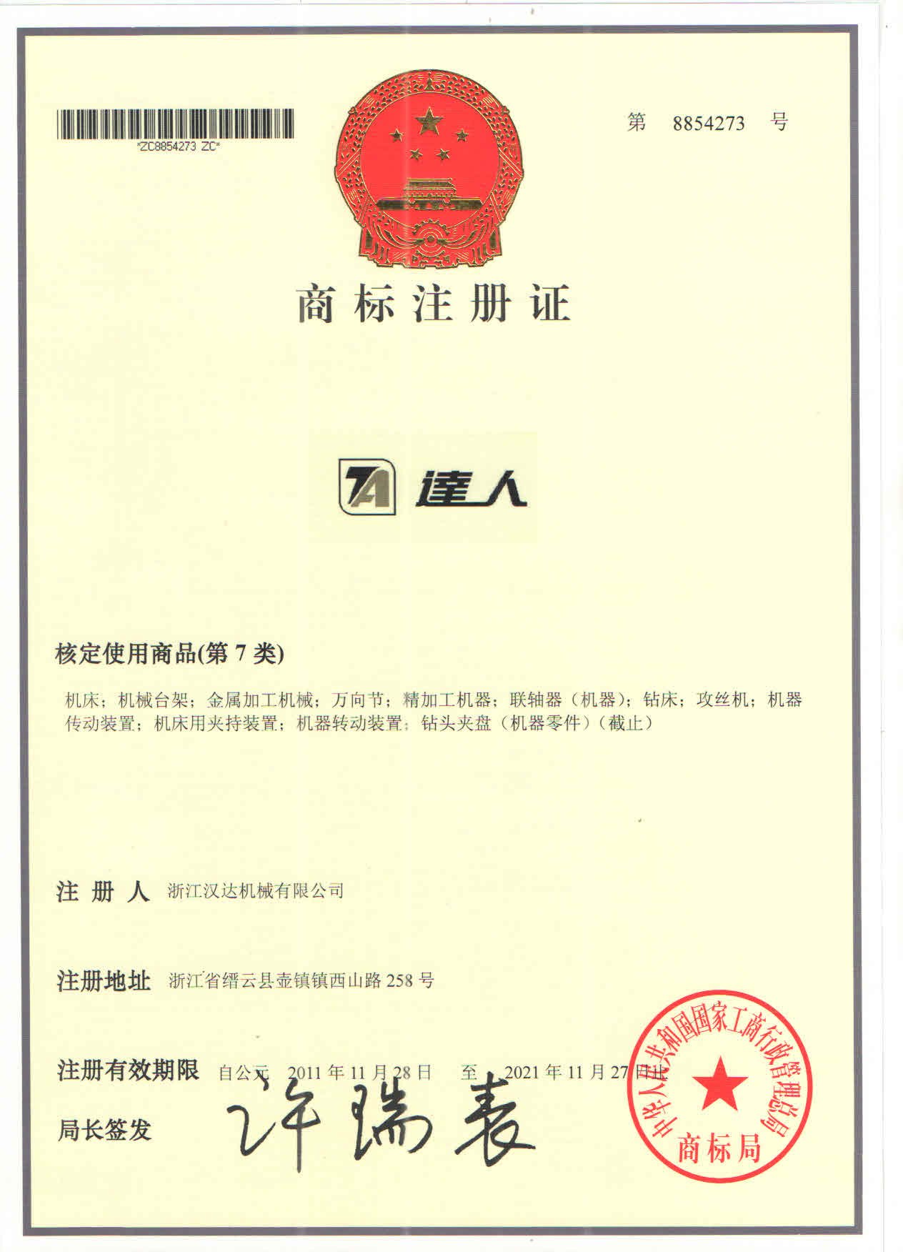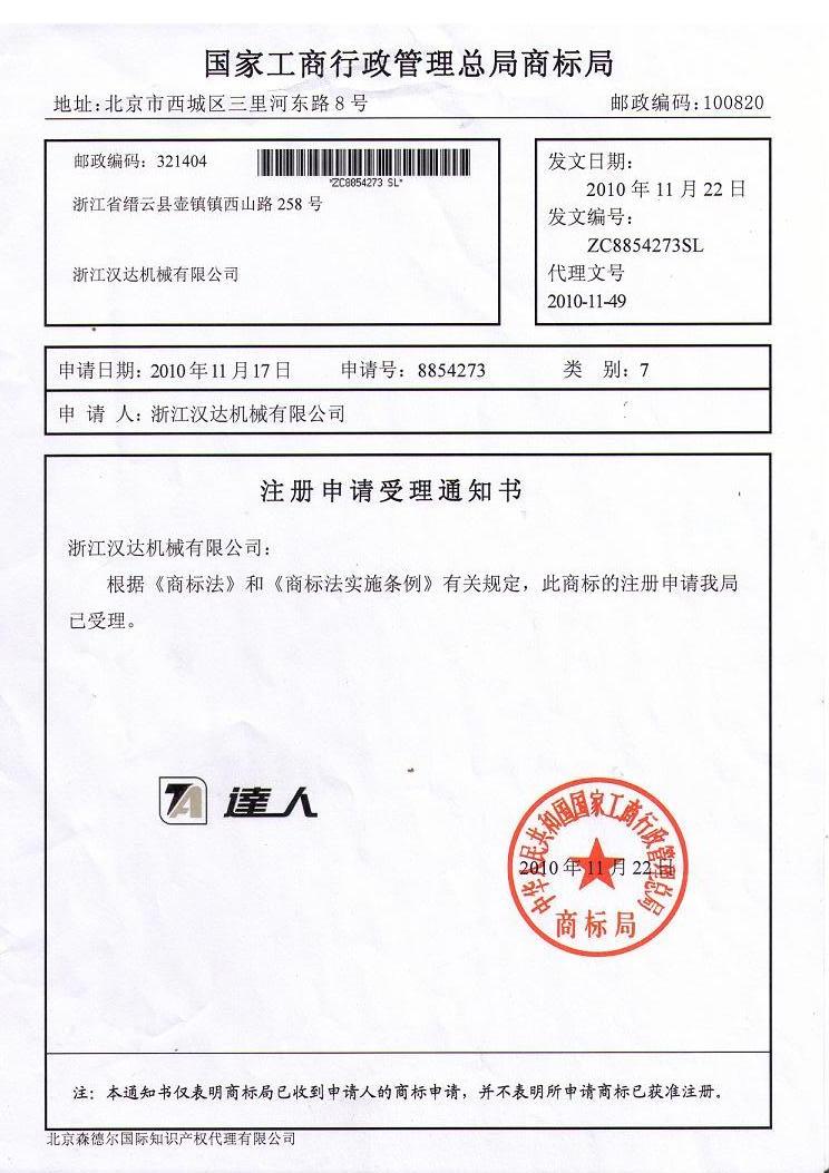 漢力達(dá)商標(biāo)注冊(cè)證書